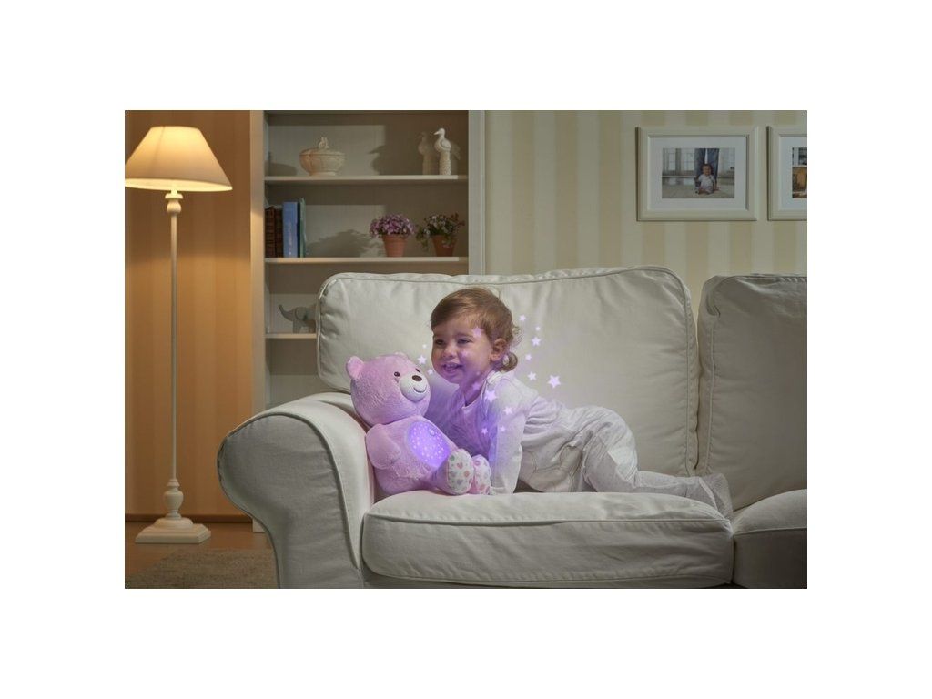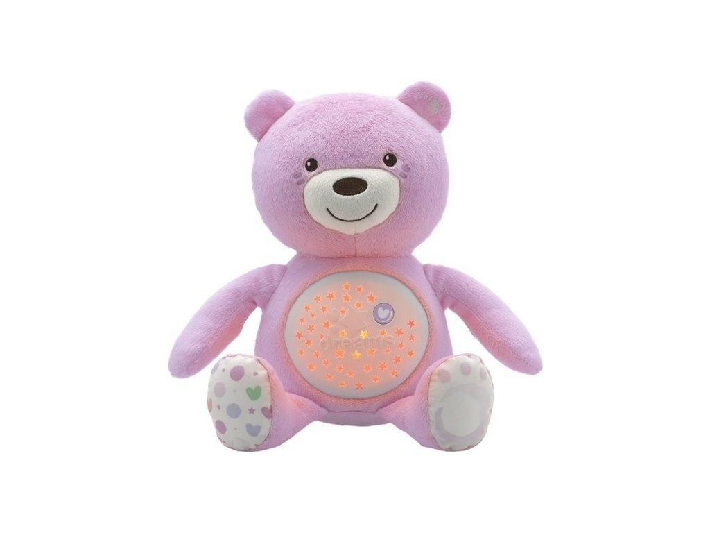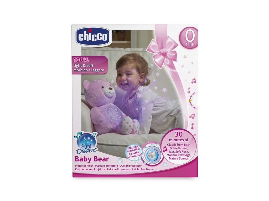 Plyšový medvídek s projektorem ze série Chicco First Dreams je plyšový, měkký maskot s mechanismem skrytým v bříšku, který zobrazuje barevné hvězdy a přehrává až 30 minut zvukových efektů jako: klasická hudba (Bach a Beethoven), jazz soft rock a New Age a zvuky přírody.