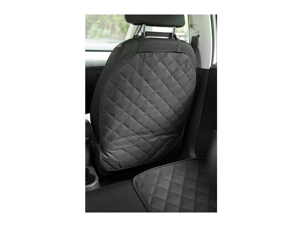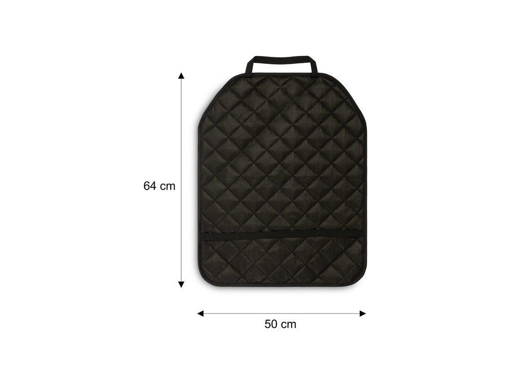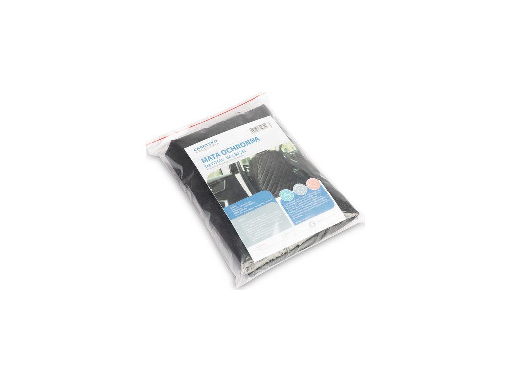 Mata zabezpiecza tył fotela samochodowego przed uszkodzeniami, przetarciami oraz zabrudzeniami. Wykonana jest z wodoodpornego, łatwego w konserwacji materiału. Dzięki uniwersalnemu rozmiarowi 64 x 50 cm pasuje do większości foteli. Gumowe tasiemki pozwalają na łatwy montaż i są nieodczuwalne przez pasażerów. Mata jest wykończona lamówką.