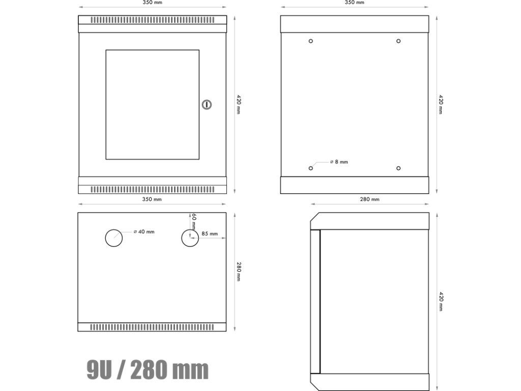 10" rack jednodílný 9U/280 DATACOM černý Skl.dv.