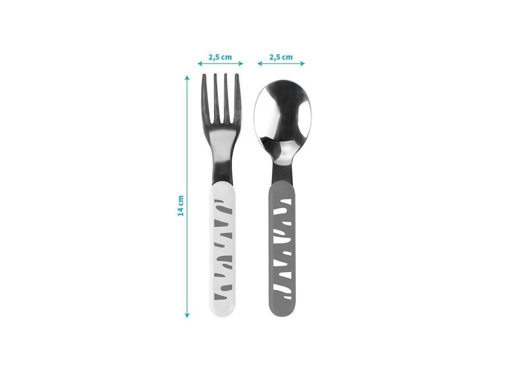 Sada příborů z nerezové oceli je velmi užitečná při učení samostatného stravování. Jejich velikost byla přizpůsobena malým ručkám dítěte.