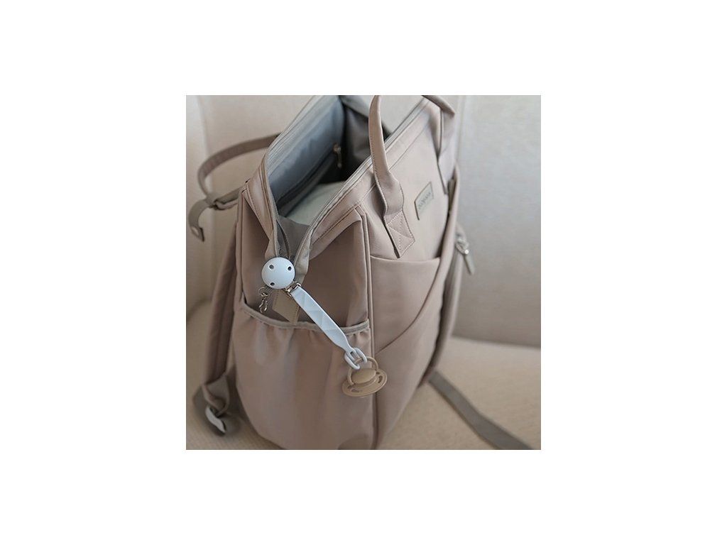 Zawieszka przyczepiona do ubranka brzdąca, chroni smoczek przed upadkiem na ziemię i zabrudzeniem. Nie musisz się ciągle po niego schylać! Zapinka pozwoli Ci utrzymać smoczek czysty i gotowy do użycia w każdej chwili.