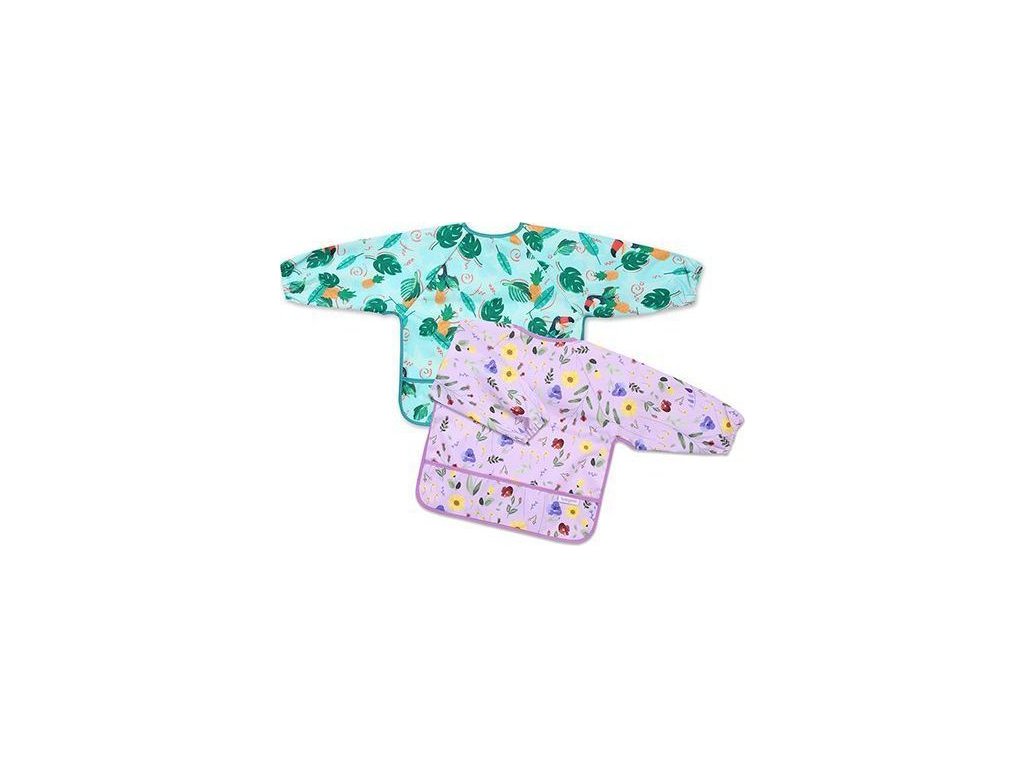 Bryndáček s dlouhým rukávem je praktická zástěra, která ochrání oblečení vašeho dítěte. Při jídle ochrání nejen přední část oblečení, ale i rukávy, které se „rády“ ušpiní. Díky pružným gumičkám dobře přilne i k malým dětským ručkám. Bryndáček s rukávy má také praktickou kapsu na drobky , kam padají zbytky jídla.