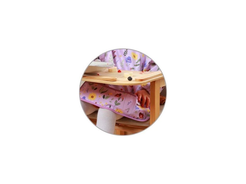 Zástěra s rukávy je voděodolná a snadno se čistí, takže se vám bude hodit při učení samostatného stravování.