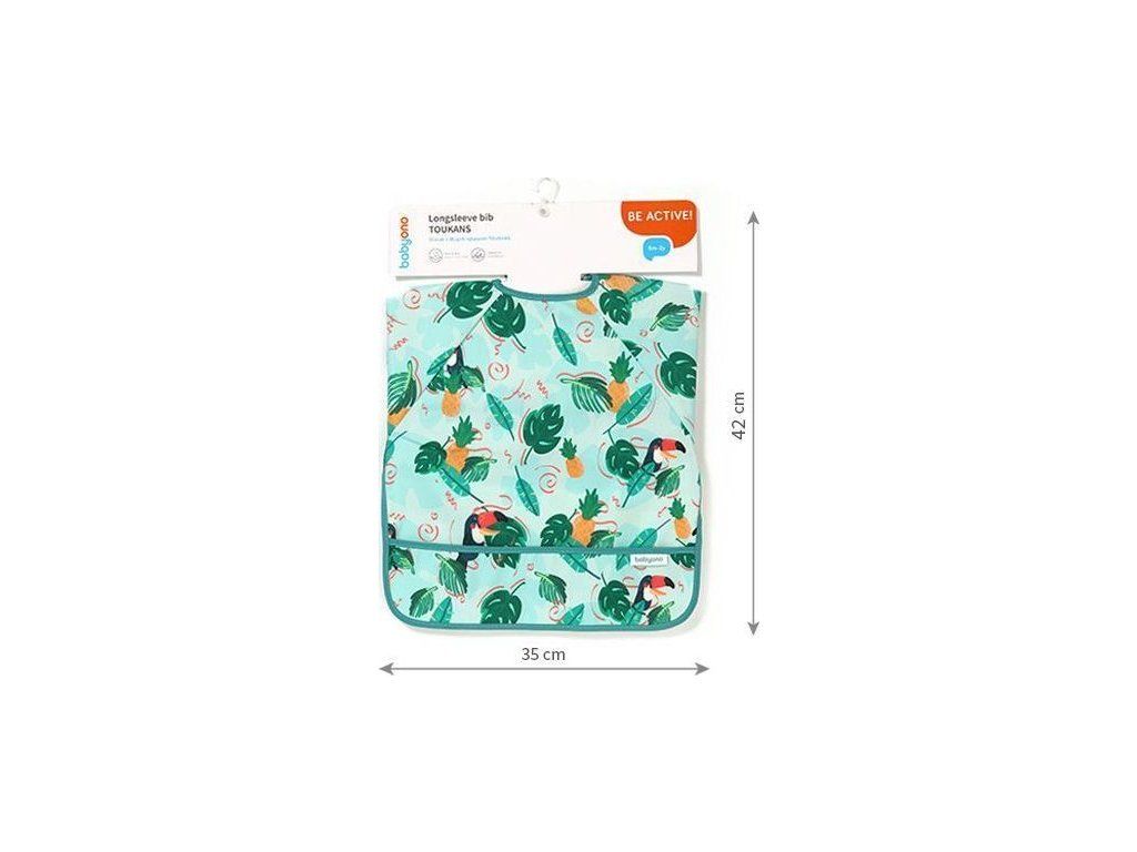 Bryndáček s dlouhým rukávem je praktická zástěra, která ochrání oblečení vašeho dítěte. Při jídle ochrání nejen přední část oblečení, ale i rukávy, které se „rády“ ušpiní. Díky pružným gumičkám dobře přilne i k malým dětským ručkám. Bryndáček s rukávy má také praktickou kapsu na drobky , kam padají zbytky jídla.