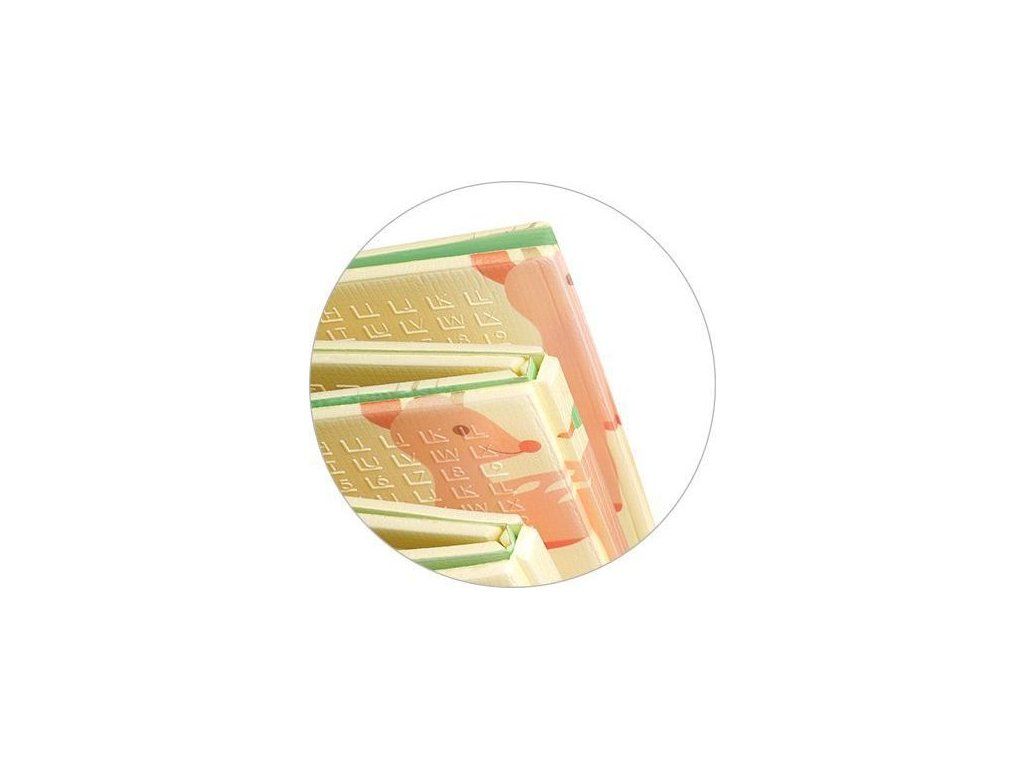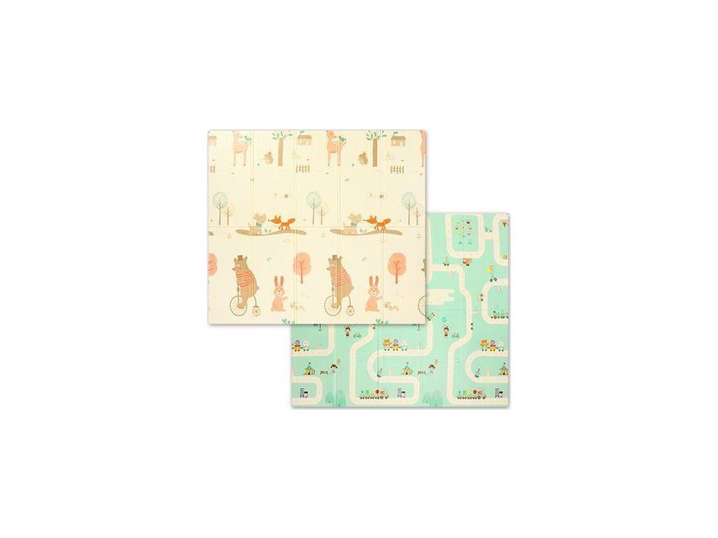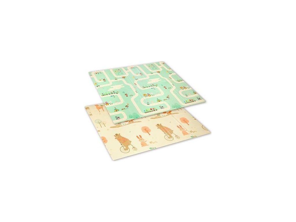 Dwustronna, składana mata posiada kolorowe i różnorodne wzory i tekstury, które pomagają rozwijać zmysły wzroku i dotyku. Zawiera obrazki zwierząt, litery, cyfry i kształty, które wspierają rozwój umysłowy i motoryczny maluchów.
