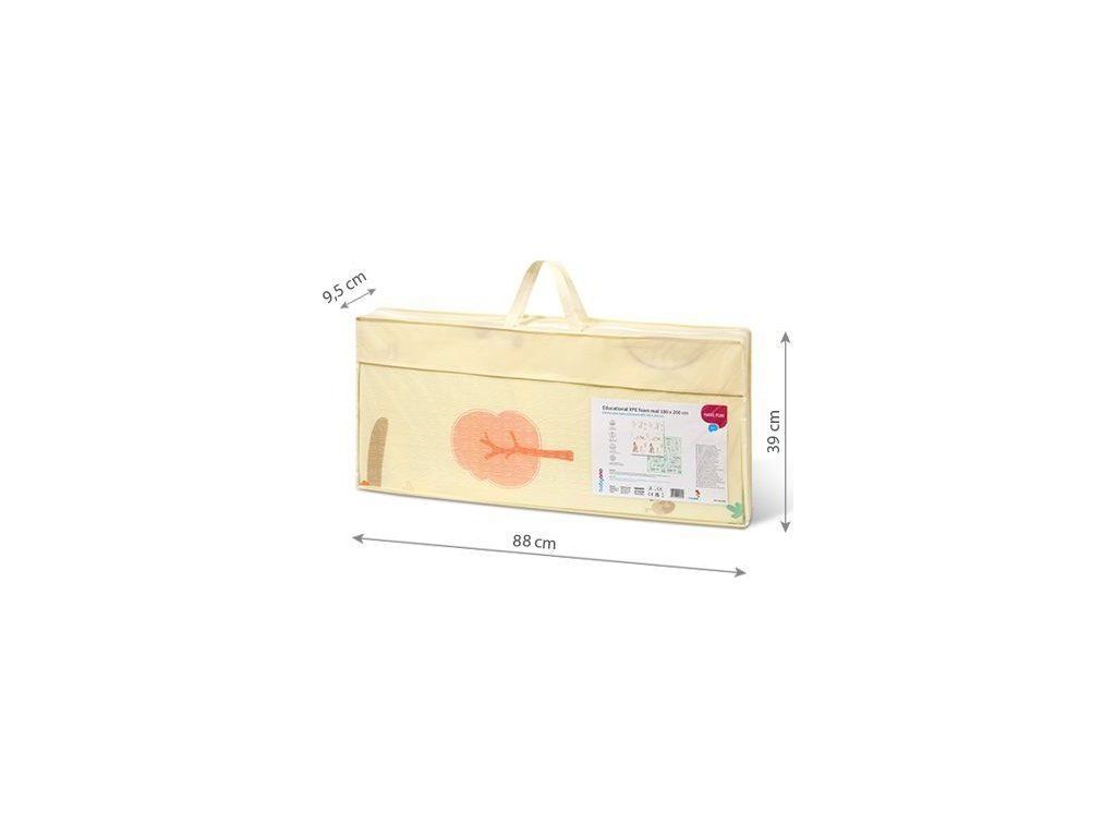 Matę można łatwo i szybko złożyć, przez co zajmuje niewiele miejsca. Jest też świetnym rozwiązaniem dla rodziców w podróży. Kompaktowy rozmiar pozwala na bezproblemowe przechowywanie, a materiałowa torba ułatwia jej przenoszenie.