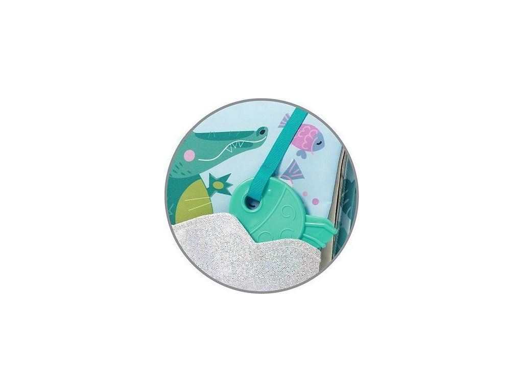 Duże lusterko pokazuje otoczenie z nowej dla dziecka strony i zachęca do odkrywania świata. Różnorodne elementy sensoryczne, takie jak tasiemki, gryzak, szeleszczące strony i błyszczące detale, zapewniają godziny stymulującej zabawy. Idealna dla małych odkrywców.