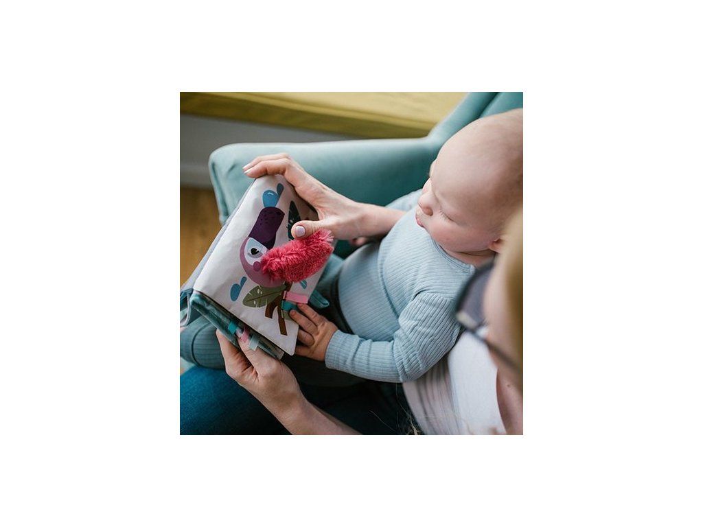 Książeczka zawiera podstawkę, dzięki której można ją położyć na różnych powierzchniach. Zachęca maluszka do spędzania czasu na brzuszku i podnoszenia się.