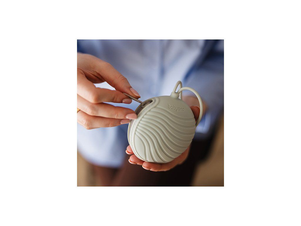 Bezpieczne i higieniczne miejsce do przechowywania smoczka Twojego dziecka? Pojemnik na smoczek z zamkiem Babyono! Zapinany na zamek błyskawiczny, skutecznie chroni przed kurzem, wilgocią i bakteriami, zapewniając, że smoczek pozostaje czysty i nie wypadnie z pojemnika.Elastyczny uchwyt umożliwia przypięcie etui do smoczka do torby, plecaka, walizki czy rączki wózka. Dzięki czemu możesz korzystać z niego w domu, na spacerze i w podróży — smoczek będzie zawsze pod ręką.Etui wykonane jest z silikonu wolnego od BPA — miękkiego, trwałego i łatwego do mycia w zmywarce. To bezpieczne i higieniczne rozwiązanie dla Twojego maluszka.