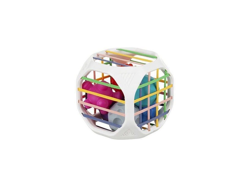 - KOSTKA - Kostka posiada nowoczesny, opływowy kształt. Zbudowana została z elastycznych i kolorowych linek. Zabawa linkami wspiera rozwój koordynacji oko-ręka, co jest kluczowe w początkowych etapach rozwoju dziecka.