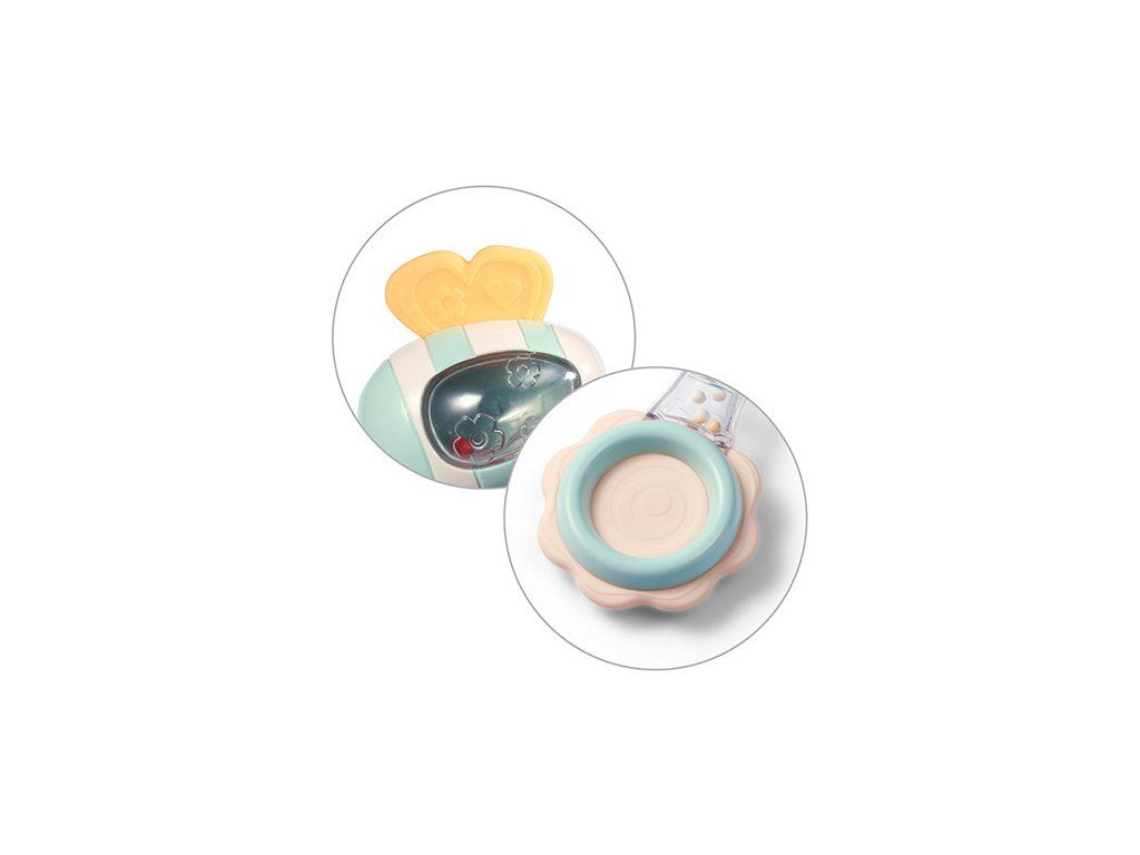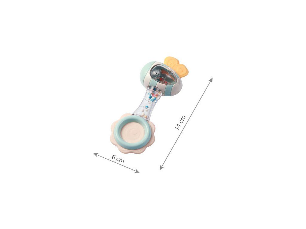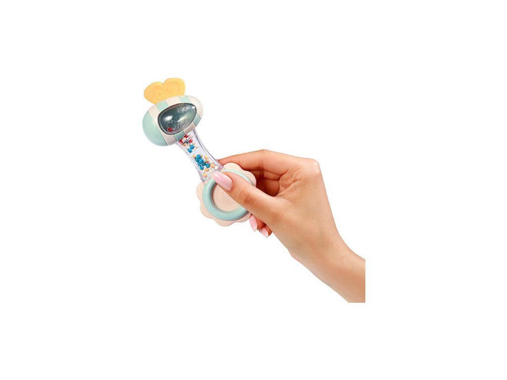 Poręczna konstrukcja grzechotki umożliwia jej wygodne trzymanie w małych rączkach dziecka. Poruszanie grzechotką wspiera rozwój zdolności motorycznych u niemowląt, pomagając w stymulowaniu koordynacji ręka-oko oraz manipulacji przedmiotami.