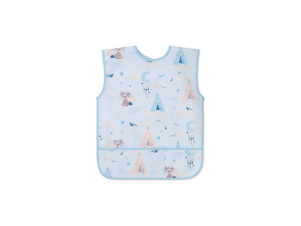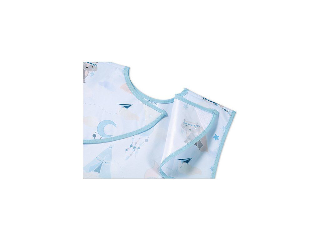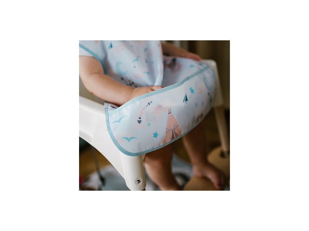 Fartuszek zabezpieczy ubranie malucha przed plamami. Sprawdzi się podczas codziennych posiłków, nauki jedzenia, a także zabawy i zajęć plastycznych.