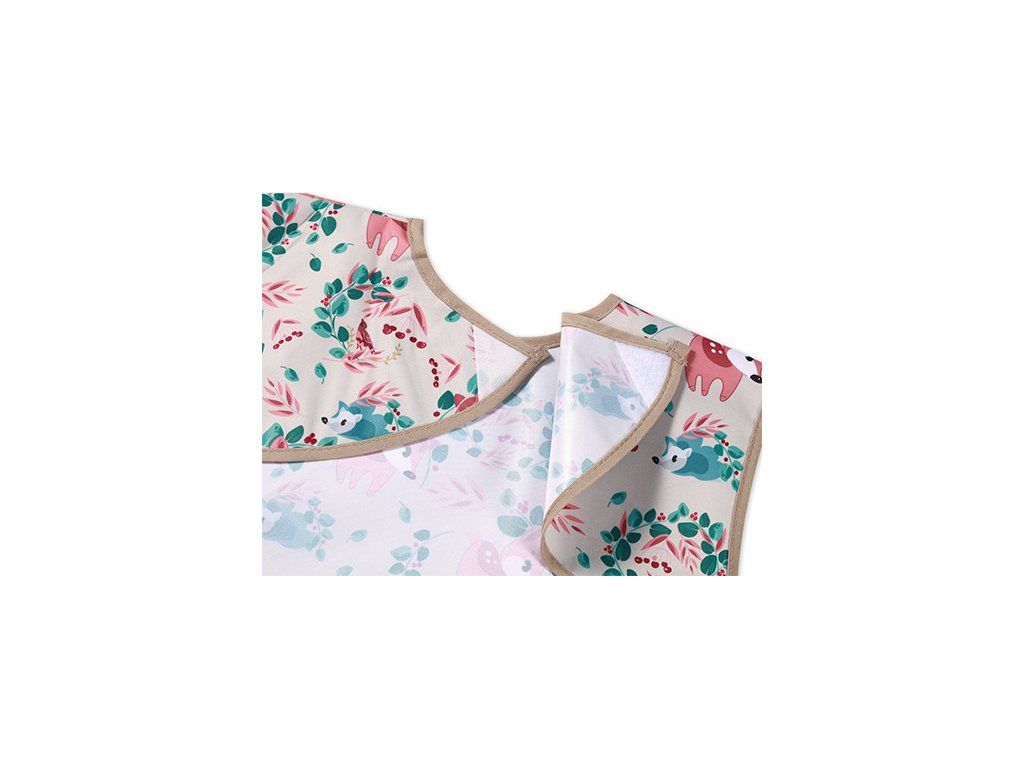 Fartuszek zabezpieczy ubranie malucha przed plamami. Sprawdzi się podczas codziennych posiłków, nauki jedzenia, a także zabawy i zajęć plastycznych.