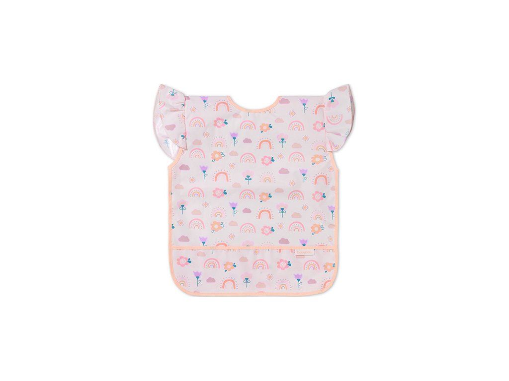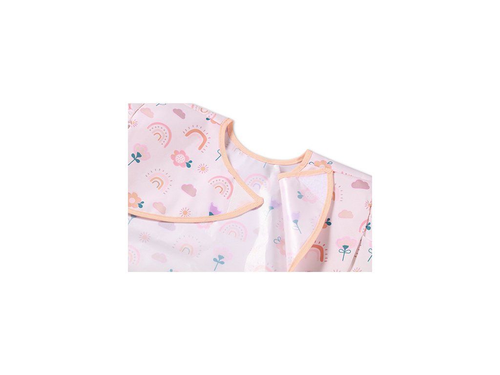 Fartuszek zabezpieczy ubranie malucha przed plamami. Sprawdzi się podczas codziennych posiłków, nauki jedzenia, a także zabawy i zajęć plastycznych.
