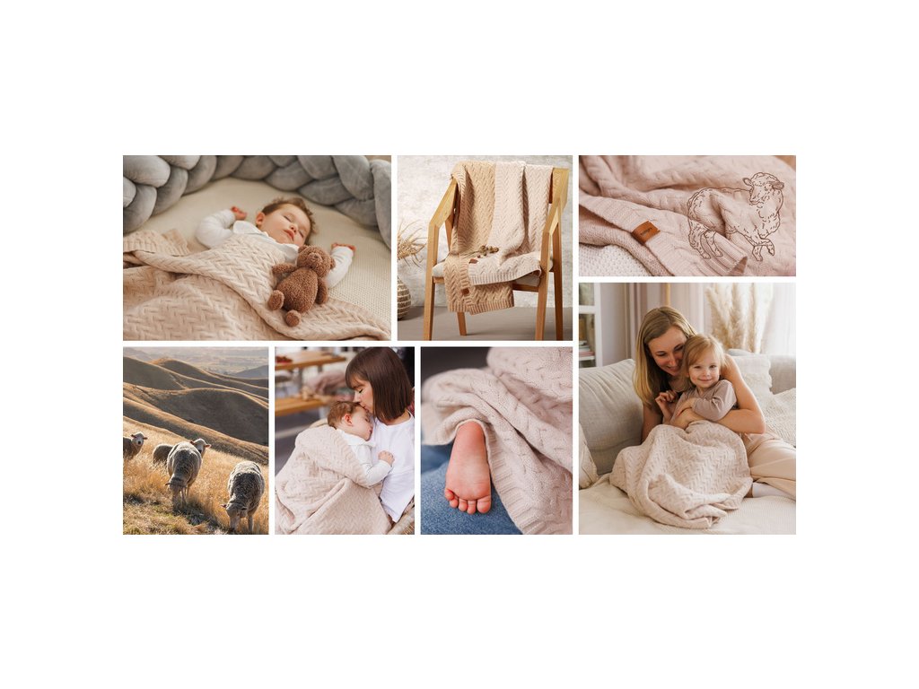 Nasz kocyk dla dzieci wykonaliśmy z wełny pozyskiwanej z runa owiec merynosów. Cienkie i sprężyste włókna nie gryzą i nie podrażniają, są hipoalergiczne i antybakteryjne. Przyjemnie otulą wrażliwą skórę dziecka.