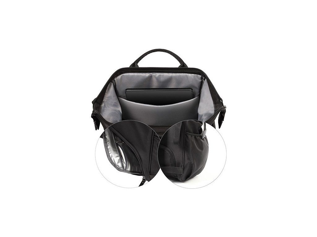 Nasz plecak na rzeczy mamy i niemowlaka zaprojektowaliśmy tak, byś niczego nie musiała szukać w pośpiechu. Ma wiele praktycznych schowków i kieszonek, do których masz łatwy dostęp. W przedniej kieszeni będziesz mieć wszystko pod ręką– telefon, chusteczki, krem. Wewnątrz znajdziesz specjalne miejsce na tablet czy laptopa, kieszenie na pieluszki i butelkę oraz wodoodporną kieszeń na mokre rzeczy. Po bokach umieściliśmy praktyczne kieszenie zewnętrzne na butelki lub bidon. Dwukierunkowy zamek sprawi, że wygodnie i szybko dostaniesz się do głównej komory.
