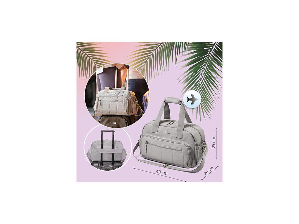 Torba podróżna dla mam i niemowląt skonstruowana jest tak, aby spełniała wymagania najbardziej restrykcyjnej linii lotniczej. Jej wymiary 40 cm x 20 cm x 25 cm sprawiają, że sprawdzi się jako bagaż podręczny.
