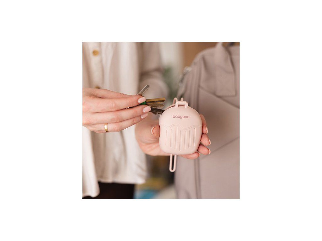 Etui do smoczka wykorzystasz na różne sposoby. Możesz w nim schować klucze i drobne akcesoria. Minimalistyczny design dopasuje się do każdej Twojej torby.