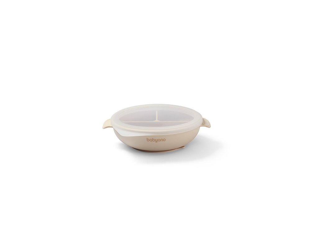 Trójdzielny talerz z przyssawką i przykrywką Babyono to Twój pomocnik przy rozszerzaniu diety maluszka, zwłaszcza metodą. Wprowadza nowe smaki, wspiera samodzielne jedzenie i ogranicza bałagan. Mocna przyssawka trzyma silikonowy talerz na swoim miejscu, a zaokrąglony kształt ułatwia nabieranie pokarmu. Trzy przegródki pozwalają rozdzielić składniki, by dziecko mogło próbować każdego smakołyku osobno. Pokrywka utrzymuje ciepło i świeżość posiłków, a antypoślizgowe uchwyty umożliwiają wygodne przenoszenie naczynia. Talerzyk z podziałką i pokrywkę wykonaliśmy z bezpiecznego i trwałego silikonu. Możesz bez obaw podgrzewać je w mikrofalówce i myć w zmywarce.