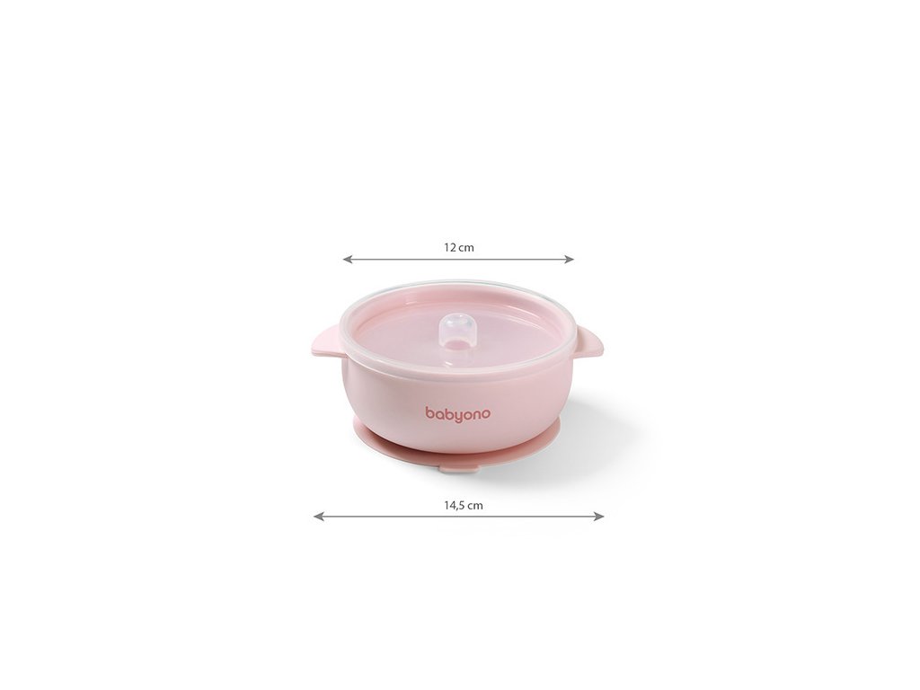 Chcesz wprowadzić nowe smaki do diety maluszka? Silikonowa miseczka z przyssawką i przykrywką Babyono ułatwi Ci rozszerzanie diety dziecka i wspomoże naukę samodzielnego jedzenia. Podasz w niej zupki, makarony, warzywa, owoce i jogurty. Dzięki mocnej przyssawce silikonowa miska dla dziecka pozostaje na miejscu, nawet gdy ciekawskie rączki chcą ją wywrócić. Zaokrąglony kształt pozwala maluchowi samemu nabierać jedzenie. Pokrywka utrzymuje świeżość i ciepło posiłku, a antypoślizgowe uchwyty umożliwiają wygodne przenoszenie miseczki. Naszą miseczkę do karmienia niemowląt z przyssawką wykonaliśmy z bezpiecznego silikonu, wolnego od BPA i trwałego. Nadaje się do mikrofalówki i zmywarki.