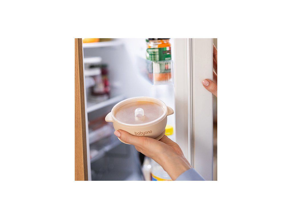 Chcesz wprowadzić nowe smaki do diety maluszka? Silikonowa miseczka z przyssawką i przykrywką Babyono ułatwi Ci rozszerzanie diety dziecka i wspomoże naukę samodzielnego jedzenia. Podasz w niej zupki, makarony, warzywa, owoce i jogurty. Dzięki mocnej przyssawce silikonowa miska dla dziecka pozostaje na miejscu, nawet gdy ciekawskie rączki chcą ją wywrócić. Zaokrąglony kształt pozwala maluchowi samemu nabierać jedzenie. Pokrywka utrzymuje świeżość i ciepło posiłku, a antypoślizgowe uchwyty umożliwiają wygodne przenoszenie miseczki. Naszą miseczkę do karmienia niemowląt z przyssawką wykonaliśmy z bezpiecznego silikonu, wolnego od BPA i trwałego. Nadaje się do mikrofalówki i zmywarki.