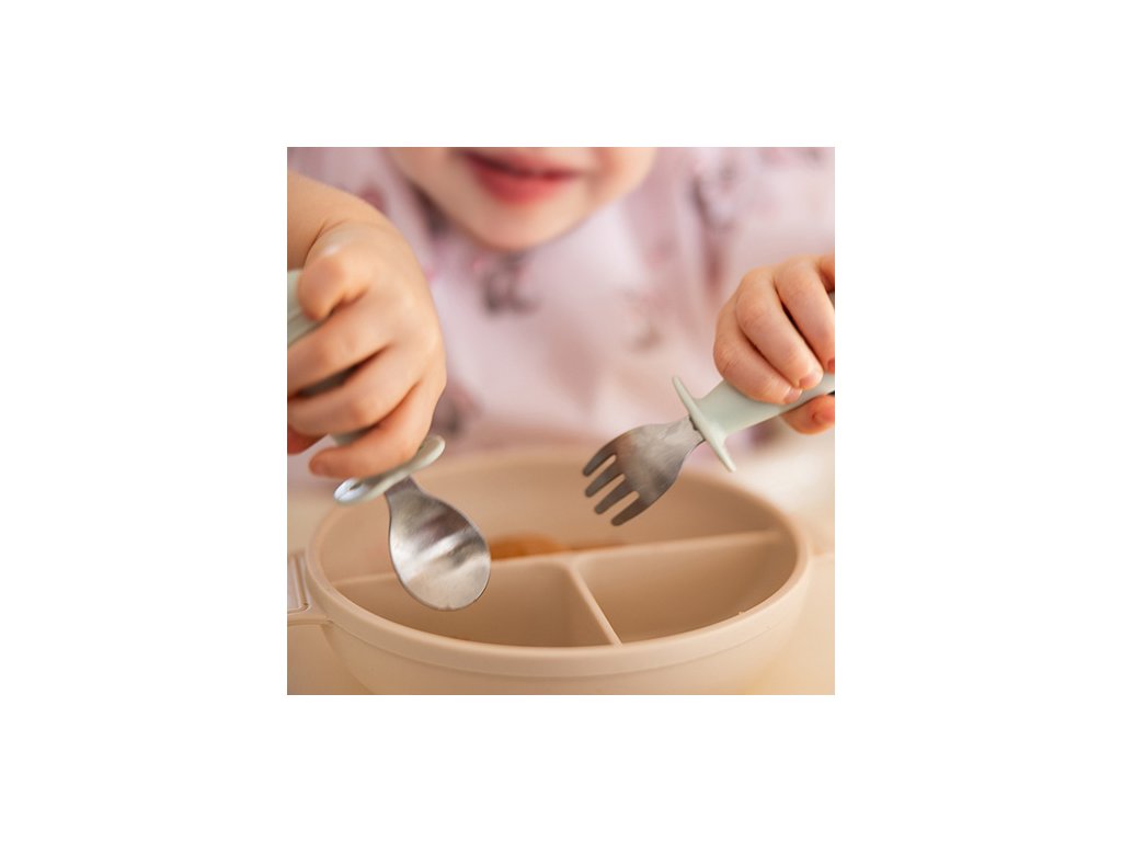 Łyżeczkę i widelec wykonaliśmy ze stali nierdzewnej, trwałej i odpornej na korozję. Uchwyty – z silikonu spożywczego bez BPA, dzięki czemu nie wyślizgują się z dłoni malca. Na długo posłużą Twojemu dziecku.