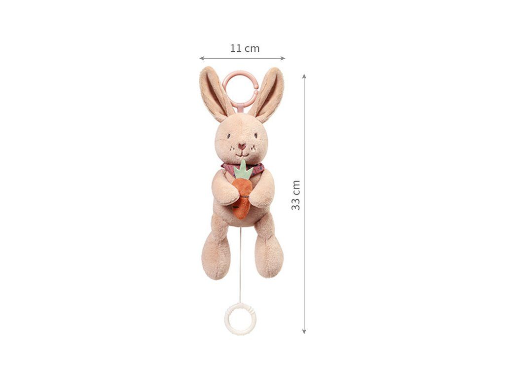 Praktyczny uchwyt pozwala łatwo zawiesić pluszaka z pozytywką na łóżeczku, wózku lub foteliku. Uspokoi maluszka w domu, na spacerach i w podróży. Króliczek jest lekki i kompaktowy- zabierzesz go ze sobą wszędzie.
