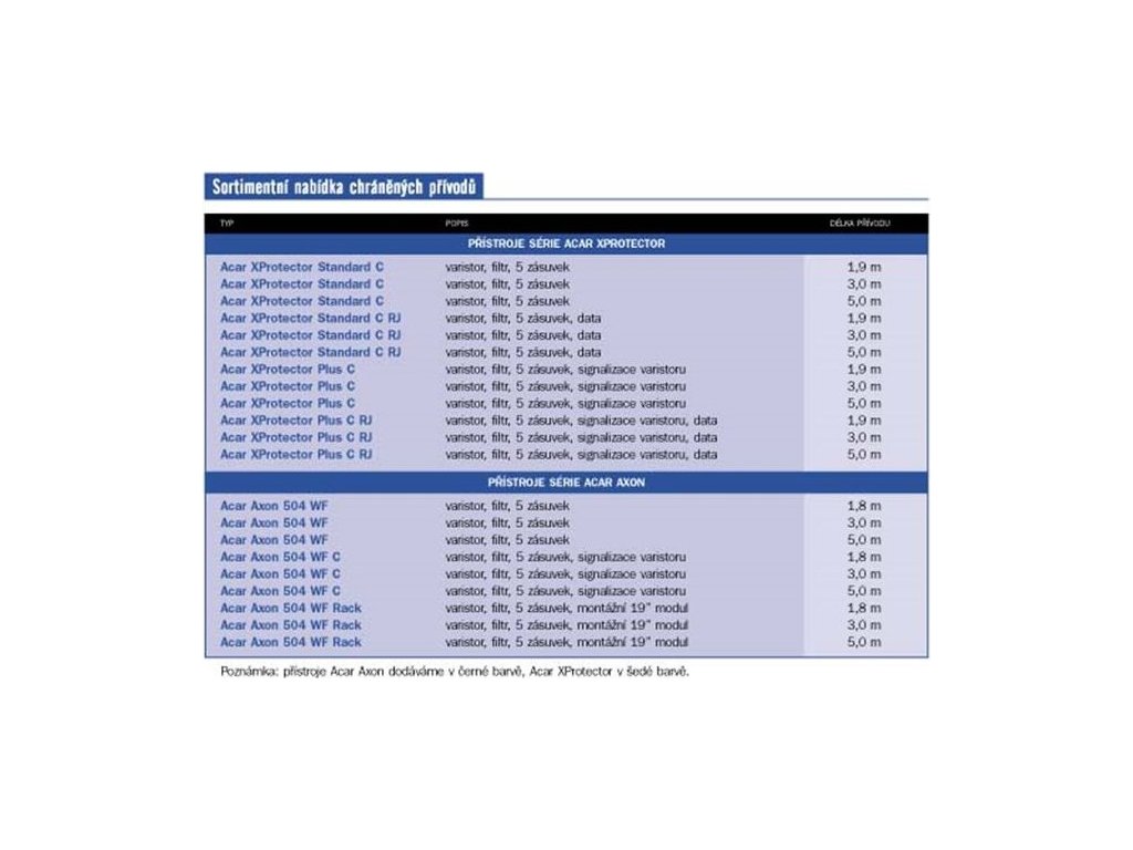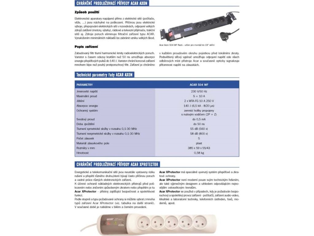 Napájecí panel ACAR A-504WF, 5 m, 5 pozic, s přepěťovou ochranou ACAR-A-504