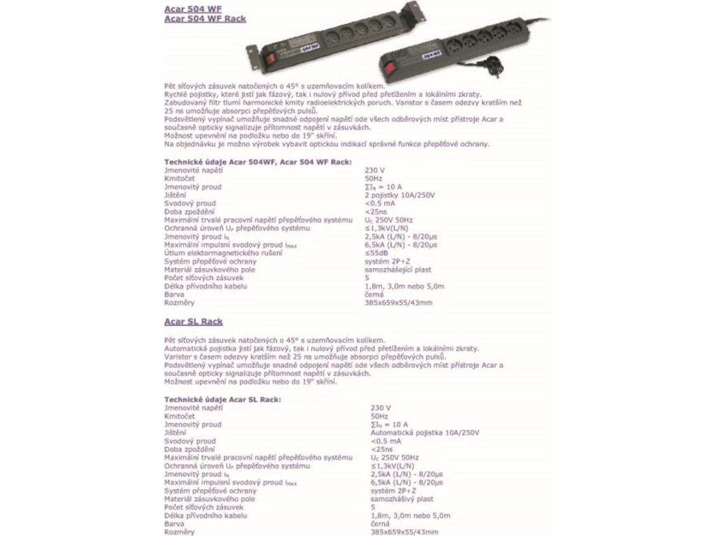19" napáj.pan.Acar 504WF 5x230V-5m black+přep.ochr