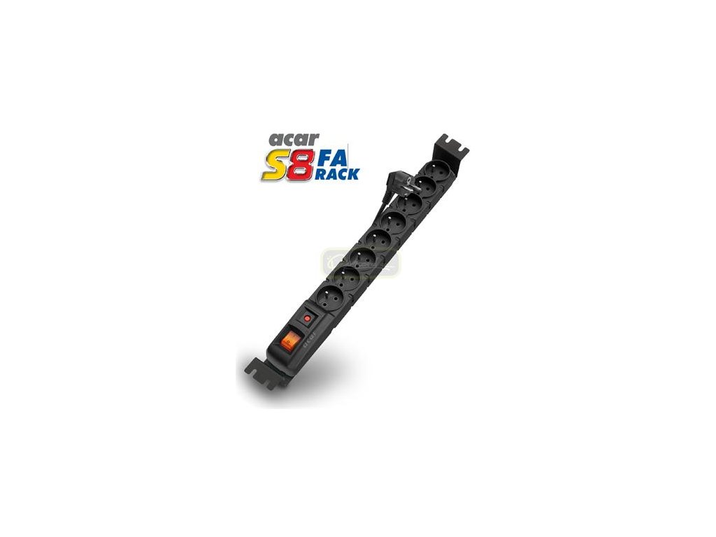 ACAR S8 FA je vybaven novým a velmi spolehlivým filtračním obvodem, který odstraňuje elektromagnetická rušení a dokonale chrání všechna zařízení, která jsou do něj připojena. Tento model je dodáván včetně odnímatelných montážních úchytů, které umožňují instalaci této přepěťové ochrany do 19" rámu stojanových i nástěnných rozvaděčů. Výška těchto montážních úchytů v 19" rámu je 1,5U; délka přívodního kabelu je 5m. ACAR S8 FA je rovněž vybaven podsvíceným vypínačem, automatický jističěm a umožňuje až čtyři možné varianty složení přívodního kabelu. Moderní provedení, konstrukce z vysoce kvalitního a nehořlavého plastu (podle ČSN IEC 60884-1 a ČSN EN 61058-1)