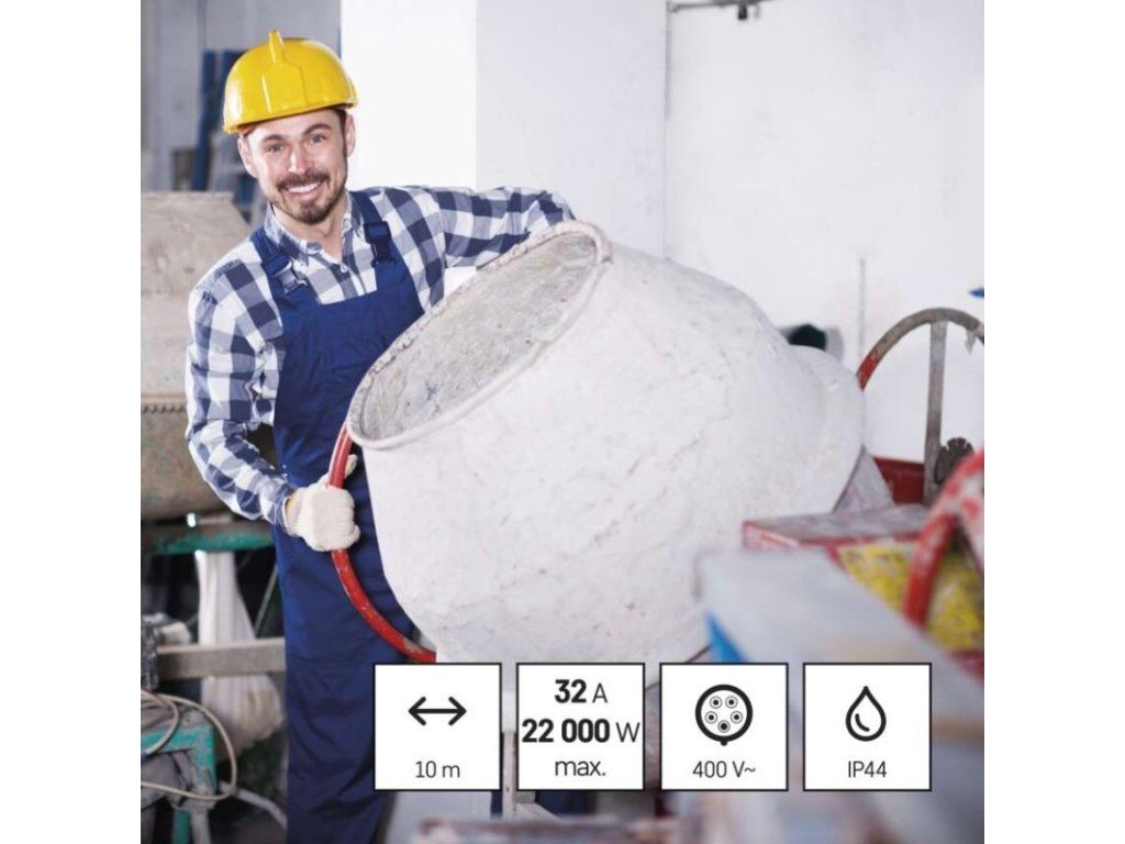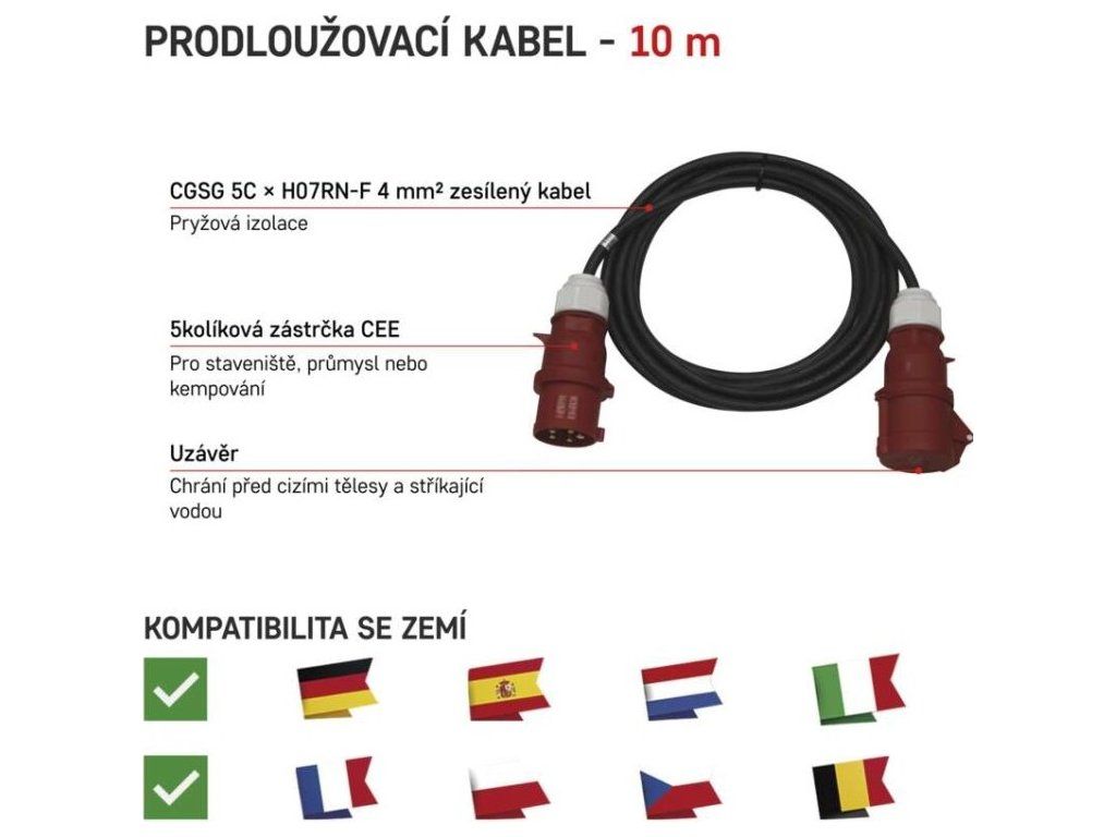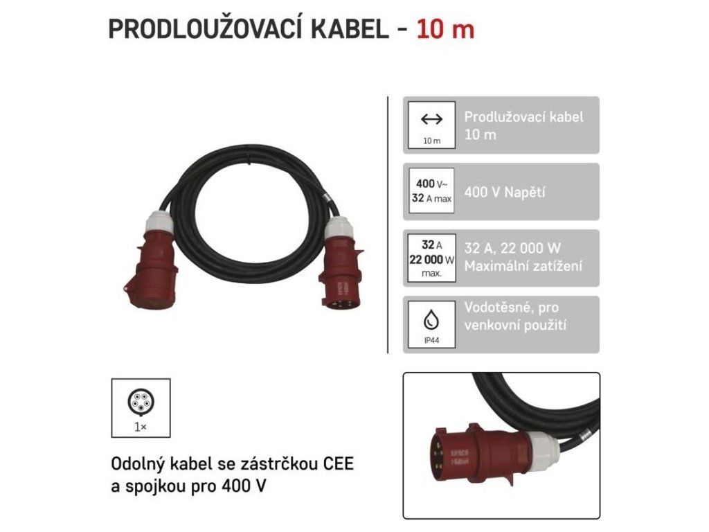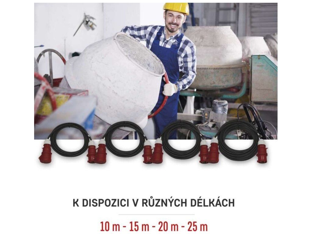 3 fázový venkovní prodlužovací kabel 10 m / 1 zásuvka / černý / guma / 400 V / 4 mm2