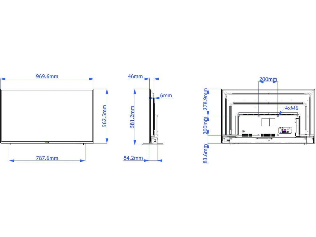 Montáž na zeď: VESA: 200 x 200 mm, M6