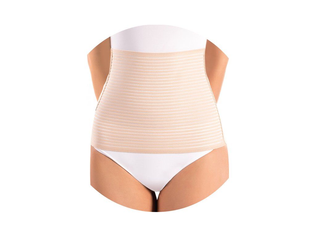 Profilovaný poporodní pás břišní je určen pro ženy po chirurgických porodech (tzv. císařském řezu) za účelem zpevnění přetažených břišních vrstev a snížení rizika kýly. Pás tiší bolest pooperační rány, dodává pocit bezpečí a pohodlí a usnadňuje dřívější cvičení gymnastiky posilující břišní svaly. Pro správné nastavení velikosti si změřte obvod břicha a vyberte velikost z tabulky.