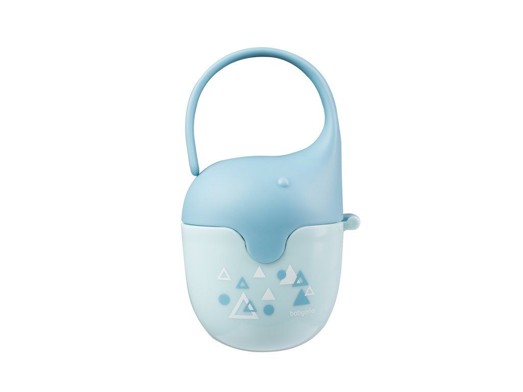 Zásobník na dudlík ve tvaru slona je praktický výrobek na všechny cesty. Ochrání dudlík dítěte před nečistotami, pohodlně se používá a snadno se připevňuje. Flexibilní kufr umožňuje připevnit kontejner na kočárek, autosedačku nebo tašku na kočárek. Vyrobeno z bezpečných materiálů, neobsahuje bisfenol A.