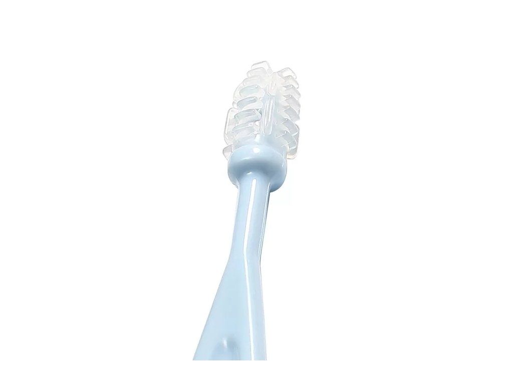 Sada jemných zubních kartáčků je nenahraditelná v každodenní ústní hygieně dítěte. Sada obsahuje 3 kartáčky: první silikonový je určen pro masáž dásní pro děti, které ještě nemají zoubky; druhý - silikon, je určen pro čištění malých zubů; třetí - s měkkými štětinami, určený pro starší děti. Zubní kartáčky jsou ideální pro to, abyste se naučili čistit si zuby sami.
