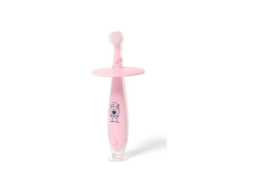 Delikatna silikonowa szczoteczka do zębów z ogranicznikiem chroniącym przed zbyt głębokim włożeniem do buzi. Przeznaczona jest do codziennej higieny jamy ustnej, przydatna również podczas masażu dziąseł, dla dzieci które nie posiadają jeszcze swoich ząbków. Dzięki wesołemu designowi mycie zębów stanie się zabawą. Idealne do nauki samodzielnego mycia zębów.