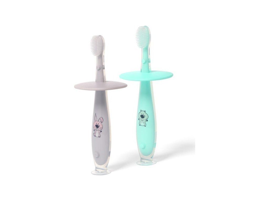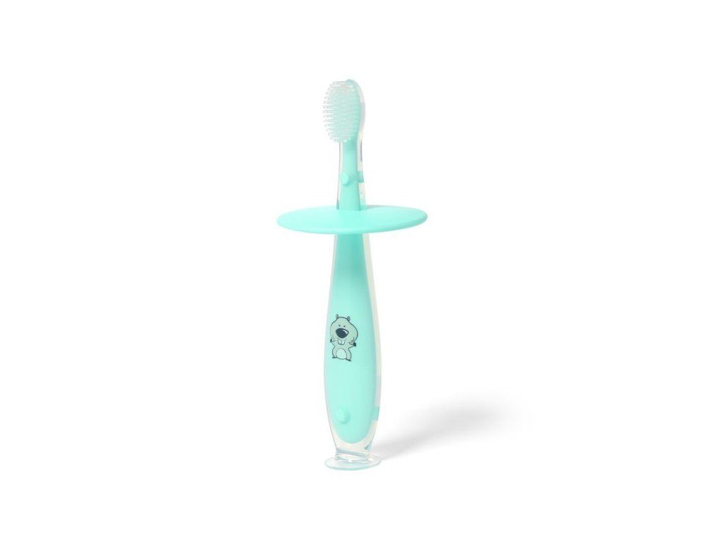 Jemný silikonový zubní kartáček s omezovačem proti zasunutí příliš hluboko do úst. Je určen pro každodenní ústní hygienu. Díky veselému designu se čištění zubů stane zábavou. Ideální pro učení se čistit si zuby samostatně.