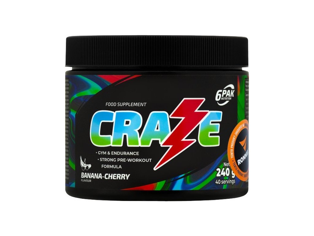 6Pak Nutrition Craze je skvělou volbou pro všechny, kteří oceňují nejvyšší kvalitu a promyšlené složení. Produkt je určen pro osoby s vysokou tolerancí vůči účinkům kofeinu. Vzorec byl vyvinut nejlepšími specialisty v oboru a za účasti profesionálních sportovců - což umožnilo vynikající účinek.