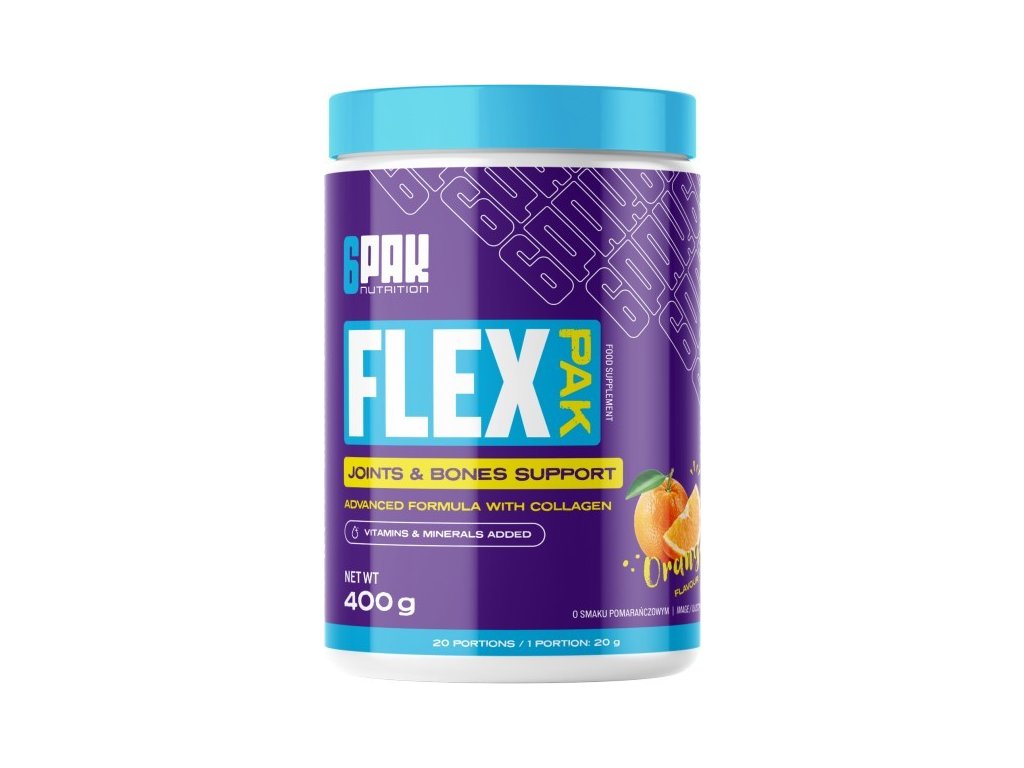 Flex Pak je pokročilá kloubní výživa, jejíž jednotlivé složky jsou důležité pro pohybový aparát. Je vhodná jak pro intenzivně trénující sportovce, tak pro nesportující populaci. Obsahuje hydrolyzovaný kolagen I. typu Solugel®, MSM, glukosamin sulfát, chondroitin sulfát, kyselinu hyaluronovou a prolin, dále pak vitamíny a minerály (vápník, hořčík, vitamín C a B6).