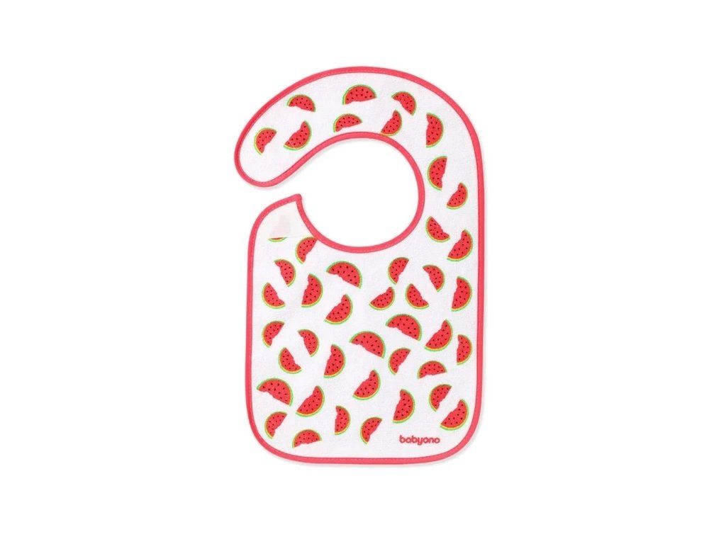 Froté bryndáček FLAVOR EXPLORER je vyroben z kvalitní froté bavlny. Vnitřní vrstva je podšitá voděodolným materiálem, který navíc chrání oblečení před nečistotami a činí bryndáček voděodolným. Pohodlné a praktické zapínání na suchý zip zvyšuje komfort nošení bryndáku a barevné aplikace zpříjemňují dítěti jídlo.