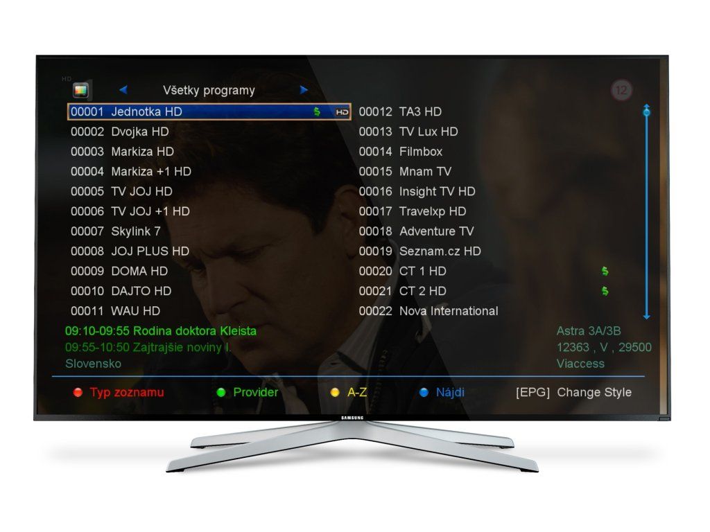 S jednoduchou inštaláciou a novou funkciou All Scan dokáže pripraviť satelitný prijímač na používanie ktokoľvek. Funkcia All Scan po vybratí jazyka a vložení karty naladí prijímač na základe typu vloženej prístupovej karty.