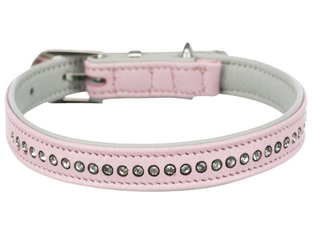 Active Comfort kožený obojek pro psy s kamínky - růžová