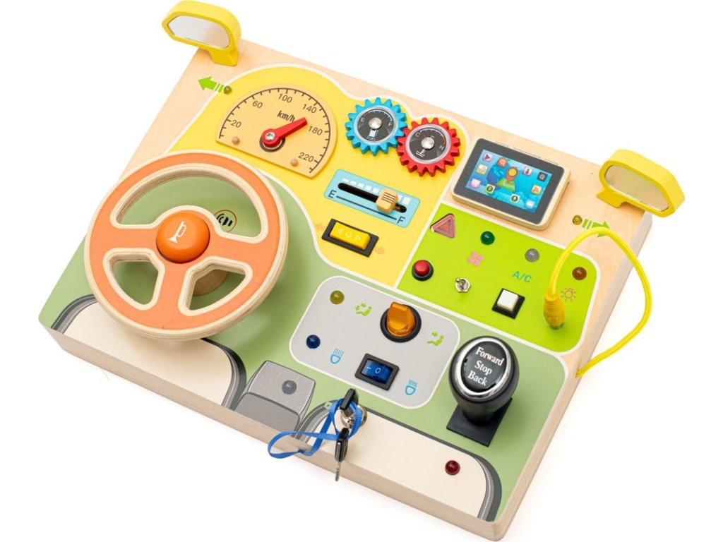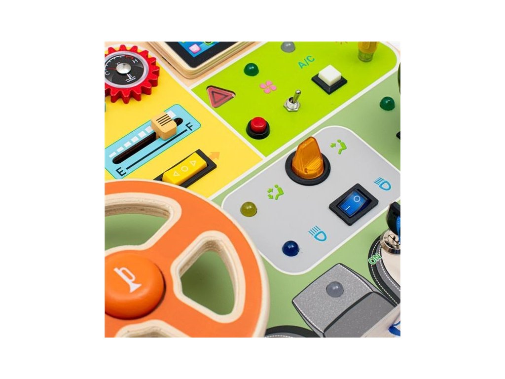 Montessori Activity Board od značky Baby Mix představuje ideální kombinaci zábavy a učení pro děti od 3 let. Multifunkční panel s interaktivním volantem, přepínači, světly a realistickými detaily je skvělým nástrojem pro rozvoj motorických dovedností, logického myšlení a koordinace ruky a oka.