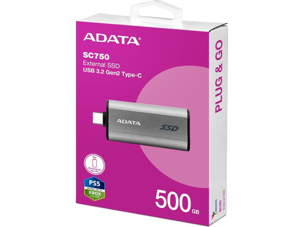 ADATA SC750/500GB/SSD/Externí/Šedá/5R