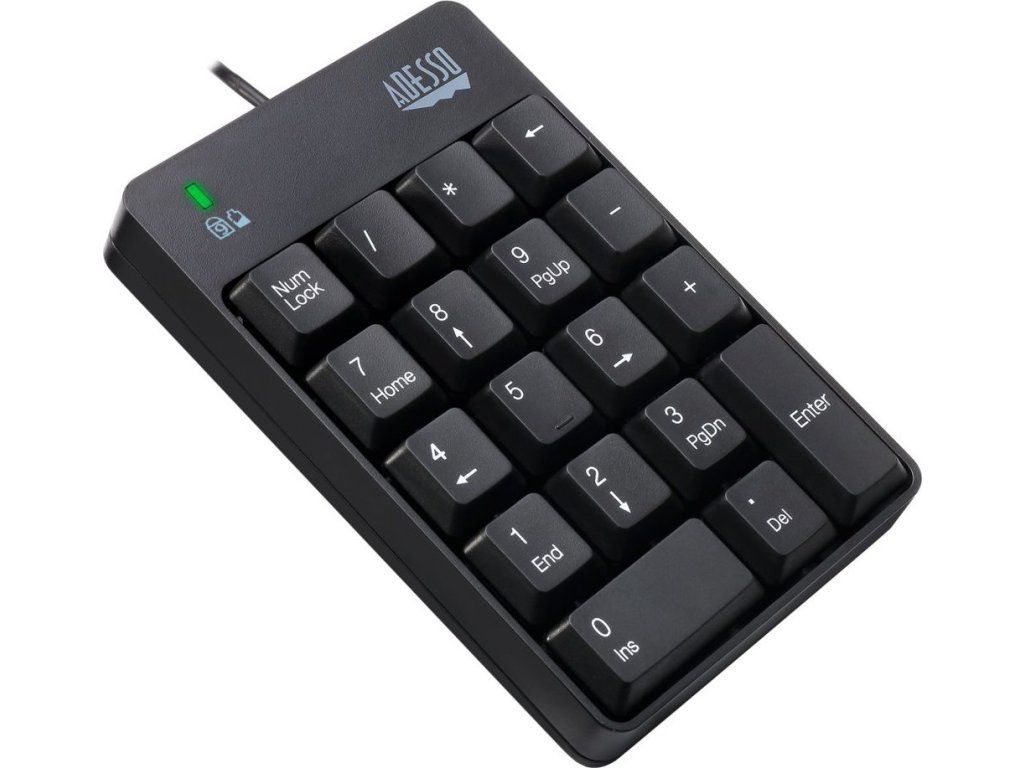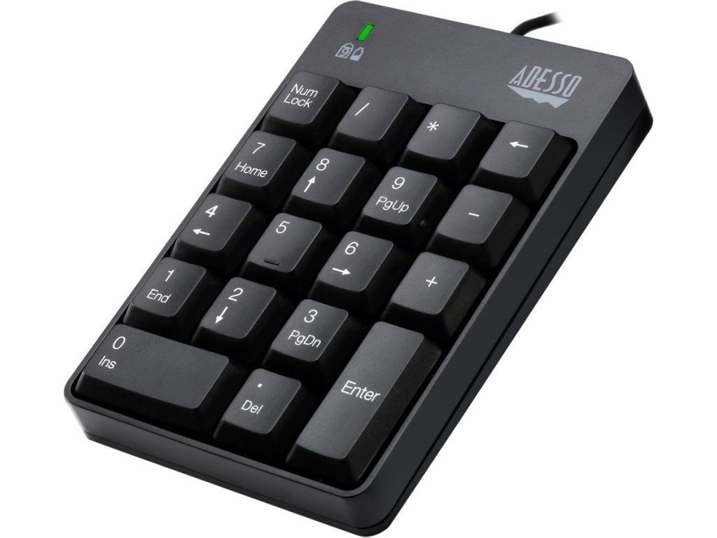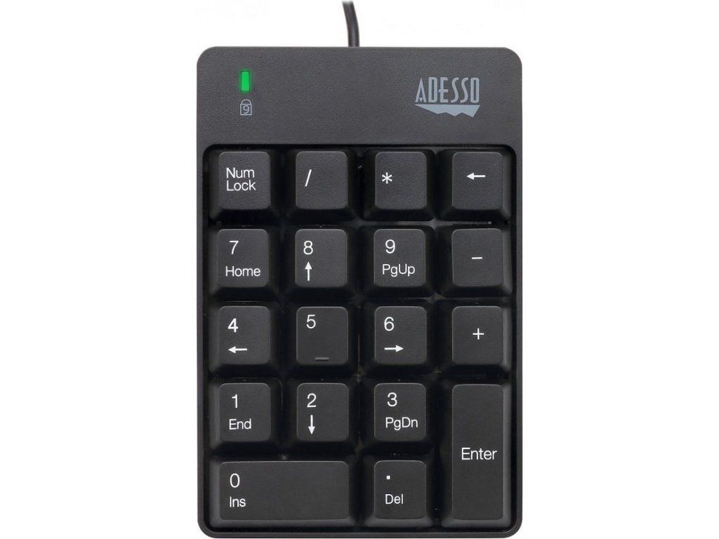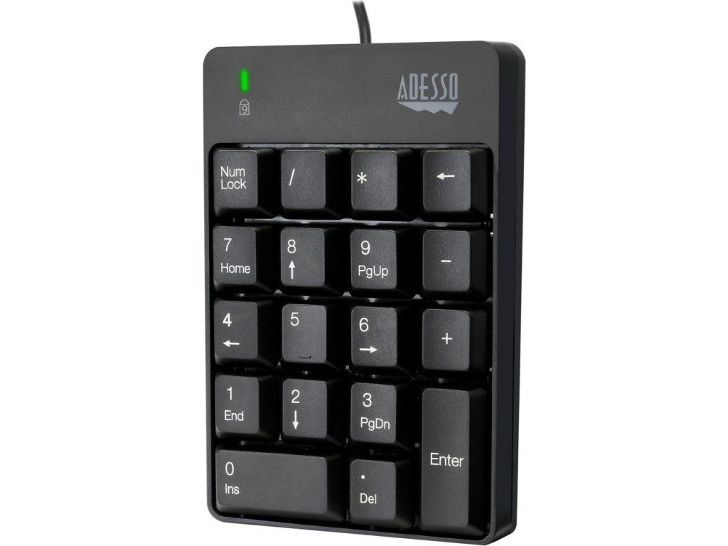 Adesso AKB-601UBExterní numerická klávesnice odolná proti polití tekutinou pro rychlé a pohodlné zadávání číselných údajů do PC či notebooku. Připojení k počítači je realizováno skrze 1,8 m dlouhý kabel zakončený USB konektorem.