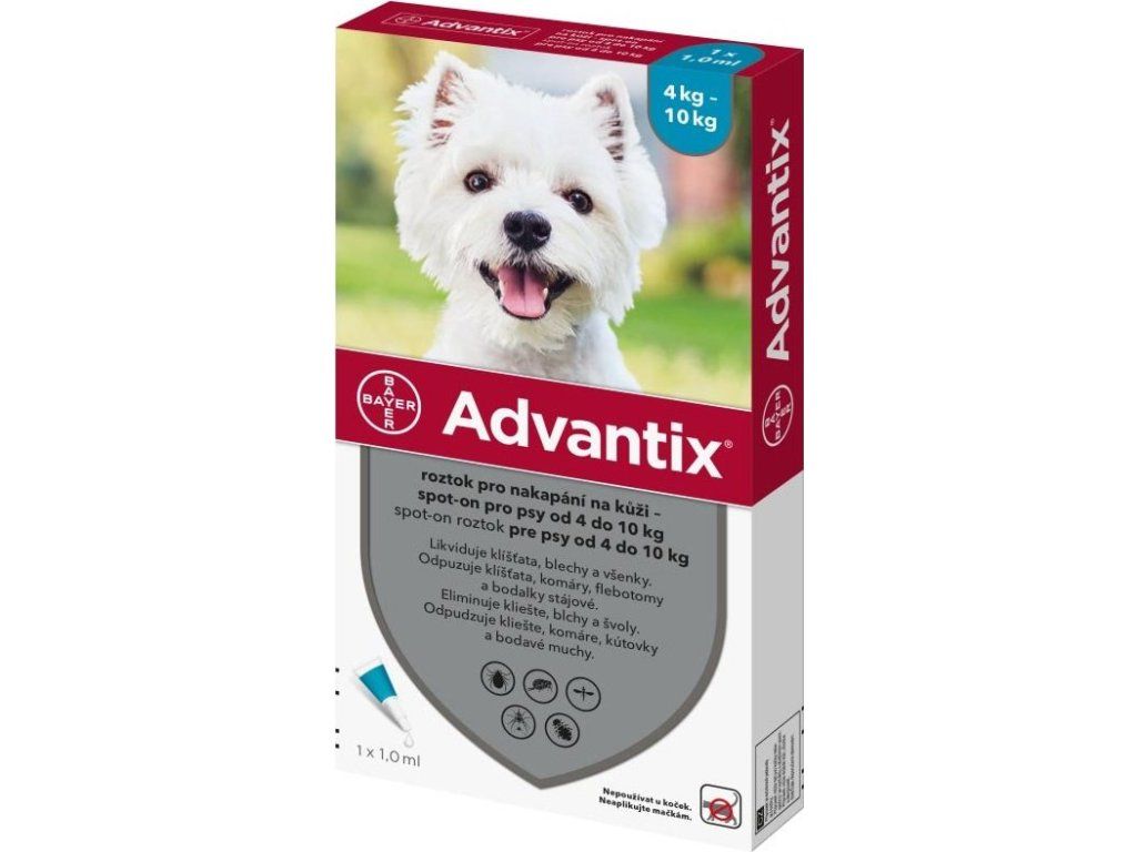 Advantix spolehlivě ochrání vašeho psa před širokým spektrem parazitů, a to po celou dobu jejich vegetace. Přípravek snadno aplikujete na pokožku v místě za hlavou a ten se pak dostane na celý povrch psa. Spolehlivě tak ochrání před zakousnutím a přisátím parazitů. Advantix je voděodolný, a tak má váš pes zajištěnou pohodovou a bezstarostnou celou sezónu. Navíc jej mohou mít březí i kojící feny.
