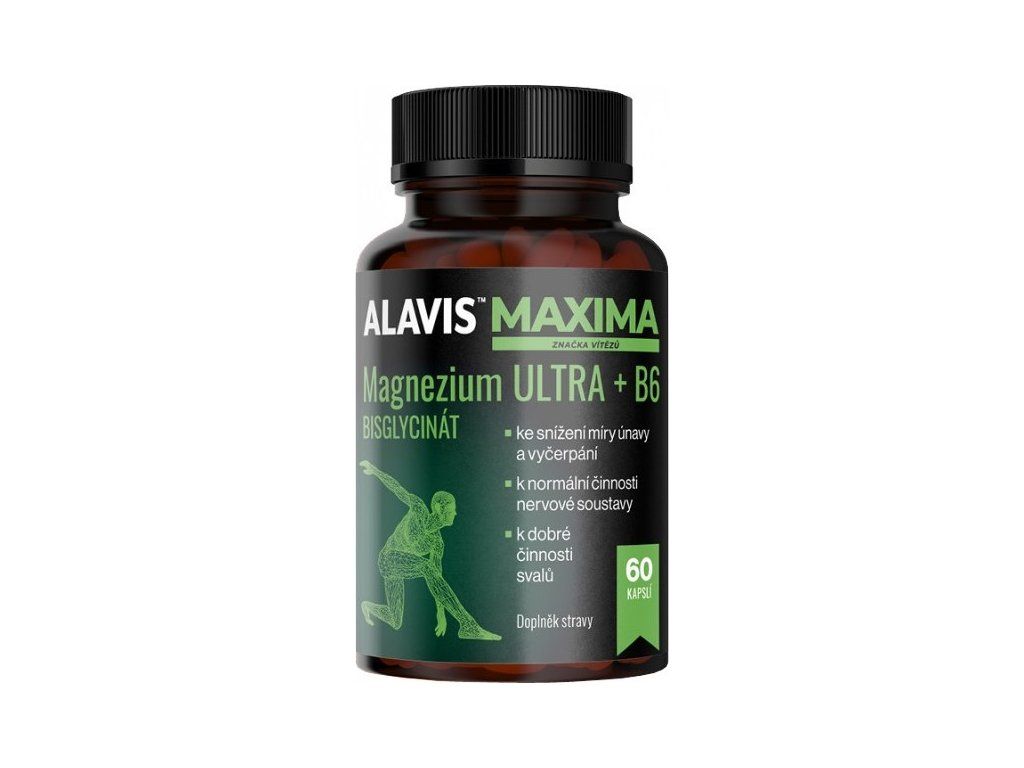 Doplněk stravy Alavis™ Maxima Magnezium Ultra + B6 přináší hořčík ve formě bisglycinátu hořečnatého obohacený o vitamín B6 (pyridoxin). Tyto dvě složky působí synergicky a přináší rychlou pomoc při dysbalanci organismu.