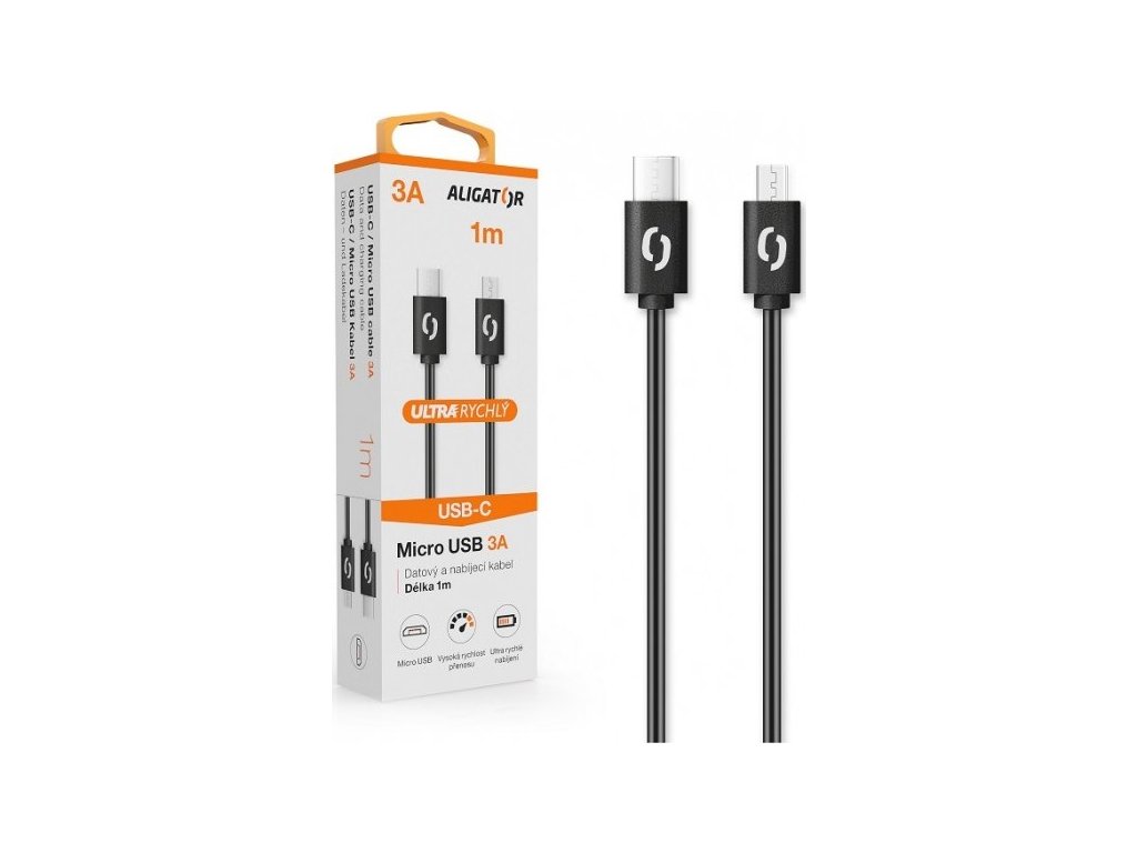 ALIGATOR Datový kabel POWER 3A, USB-C/microUSB černý