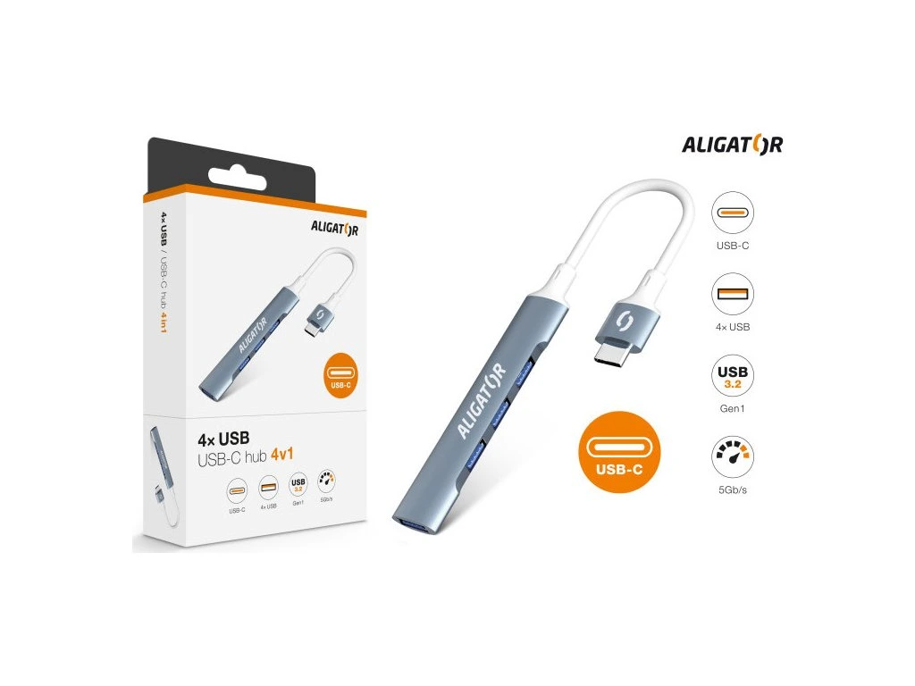 *Aligator Hub USB-C (M) na 4x USB (F) s podporou USB 3.2