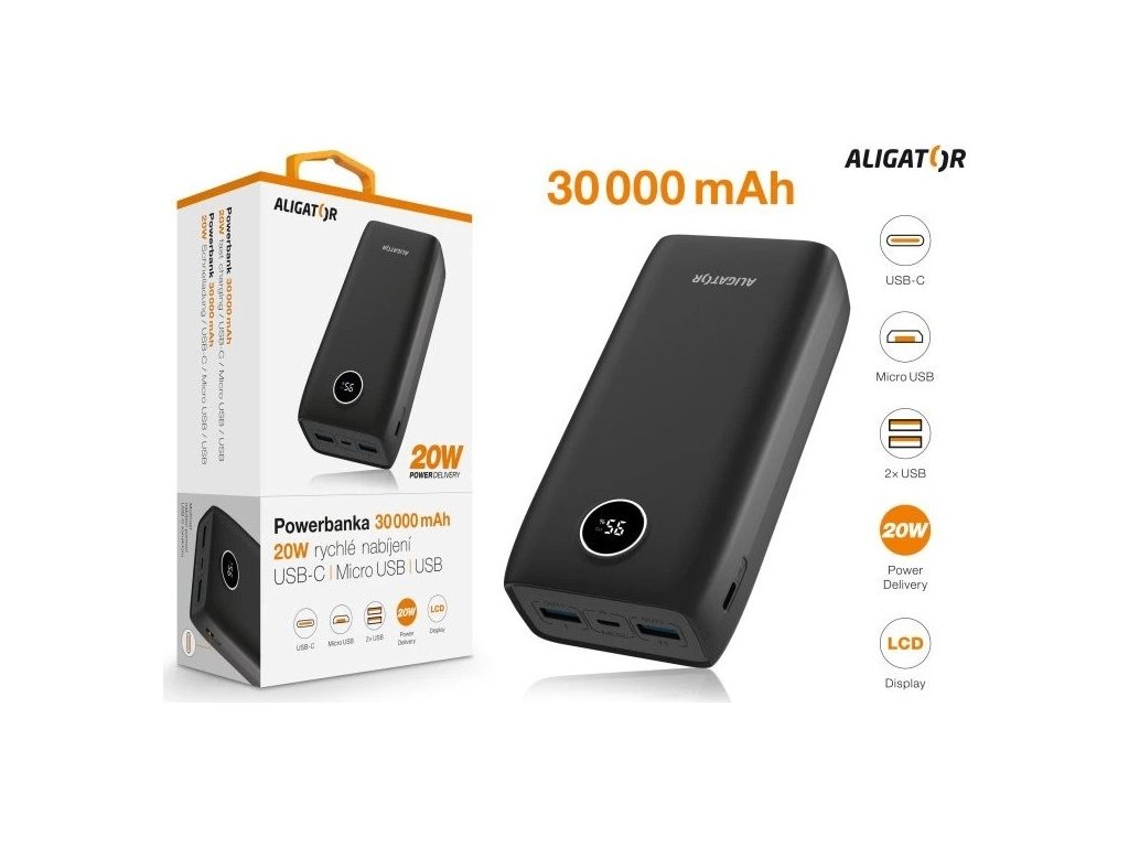 ALIGATOR PBPD30BK 30 000mAh PD 20W černá